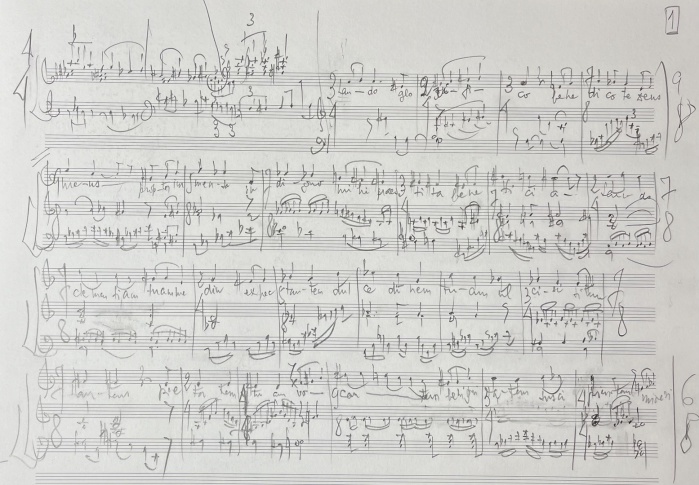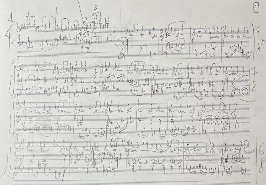 LAUDO ist eine Kantate für Mezzosopran und Orgel, basierend auf dem Text Gratiarum actiones pro Dei beneficiis von Thomas von Aquin (1225-1274), was auf Deutsch als Dankgebete für die Wohltaten Gottes übersetzt werden könnte. Diese Komposition, die zum 750. Todestag des Heiligen im Jahr 2024 entstand, zeichnet sich durch eine erweiterte tonale Harmonik aus, bereichert durch die Verwendung natürlicher Modi, Chromatik und Enharmonik. Die melodische Linie folgt einer silbengetreuen Deklamation, um die Verständlichkeit des Textes zu fördern, während zahlreiche musikalische Figuren das Lob und die Danksagung durch das gesamte Werk hindurch symbolisch zum Ausdruck bringen.